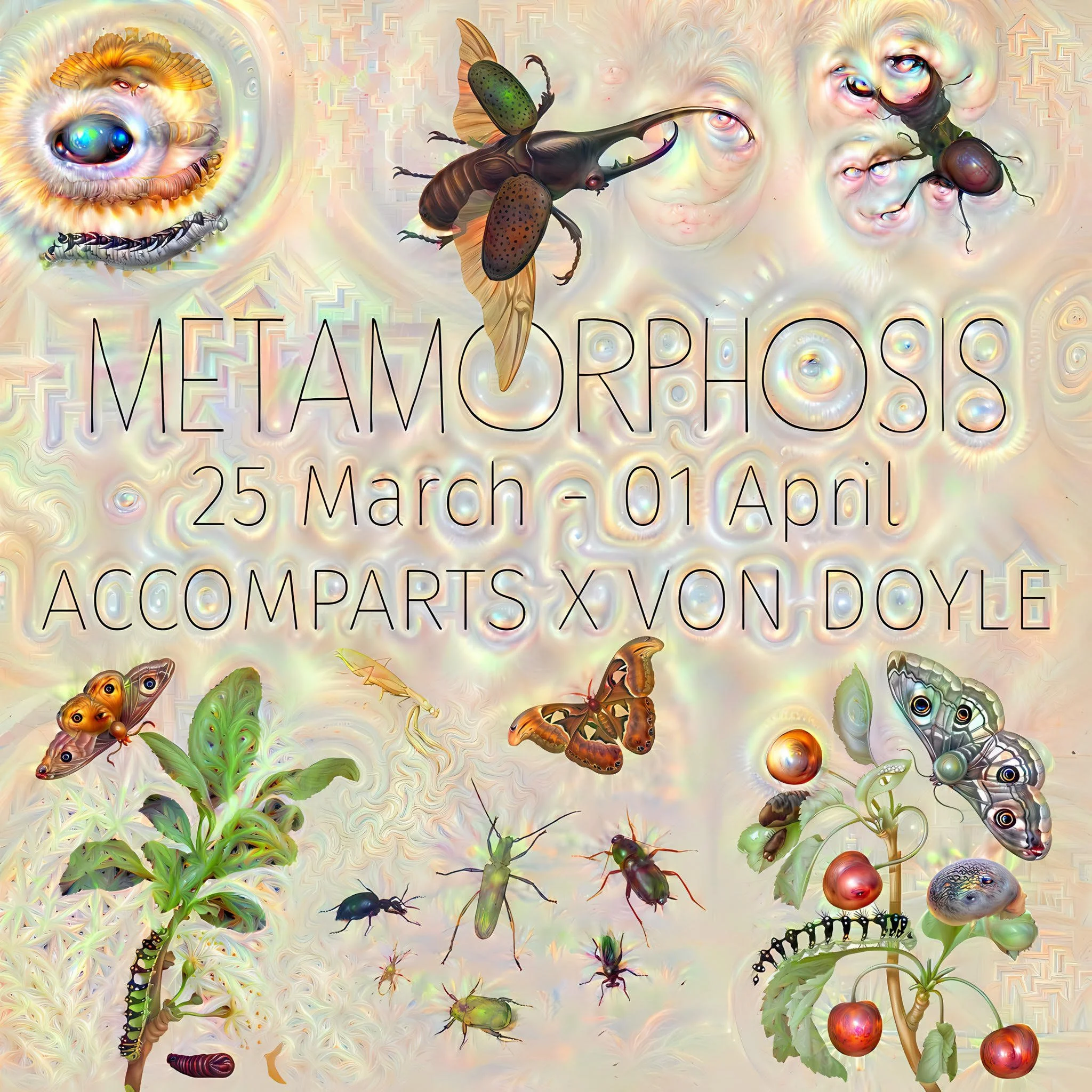 Metamorphosis Gospel will be auctioned as a 1/1 with 1,000 xtz reserve price, as part of Metamorphosis Exhibition hosted by Accomparts curated by Von Doyl.